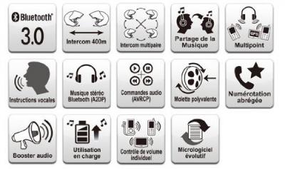 SMH5 è un auricolare stereo Bluetooth 3.0 con intercom Bluetooth progettato specificatamente per motocicli. Con SMH5 è possibile telefonare con il cellulare con Bluetooth a viva voce, ascoltare musica in stereo o le istruzioni a voce del navigatore GPS via Bluetooth wireless e conversare via intercom a due voci in collegamento duplex completo con un passeggero o altri motociclisti. Grazie alla più recente tecnologia Bluetooth 3.0 e alla tecnologia avanzata del processore di segnale digitale, SMH5 offre la migliore qualità del suono in entrata e in uscita della categoria. Inoltre, il funzionamento dei pulsanti facilmente accessibile e intuitivo fanno di SMH5 il compagno perfetto per i motociclisti.