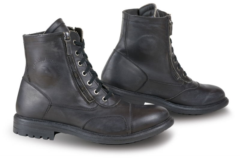 Stivale vintage Falco Aviator ha la tomaia in pelle effetto "Vintage" e membrana interna “High-Tex”, rinforzi malleolo in TPU con inserti “D3O”, chiusura rapida con lacci e cerniera e suola in gomma anti-scivolo.