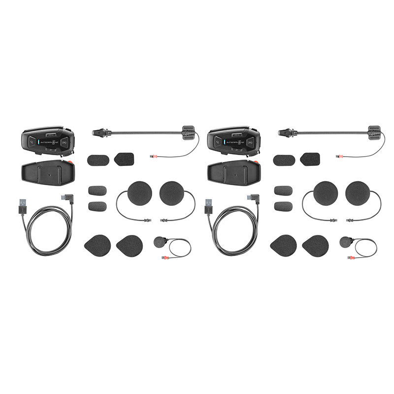 CONTENUTO PACK: Clip adesiva per montaggio sul casco - Staffa di montaggio a clip - Speaker da 40mm HD - Microfono boom (caschi jet e modulari) e adesivo (caschi integrali) - Cavo usb type C per dati e ricarica.