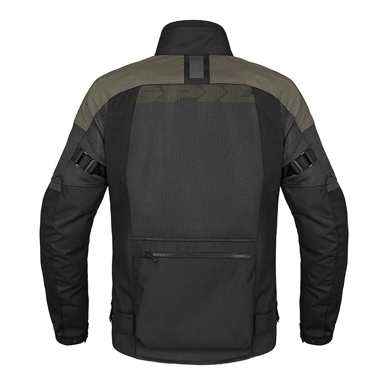 Giacca SPIDI Equinox la sua ventilazione è infatti garantita dagli ampi pannelli in rete sul torace, sulle braccia e sulla schiena, che consentono all'aria di fluire direttamente mantenendo elevato il livello di protezione passiva, mentre il giubbino interno frangivento in leggera membrana WindOut può essere indossato all'occorrenza utilizzando gli agganci Step-In Wear: tutti i componenti provvisti di questa tecnologia possono essere agganciati tra loro per creare il capo più adatto alle condizioni di guida del momento. La rete a maglia fitta, leggera e resistente, è incorporata in una struttura di tessuto Ripstop, posizionato sulle spalle e sui gomiti, punti maggiormente esposti in caso di caduta.