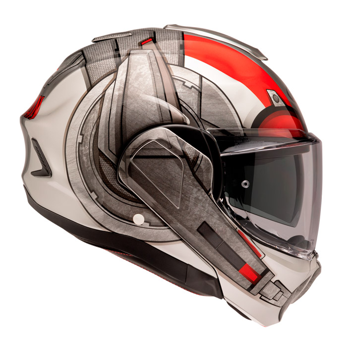 Il casco in edizione speciale F100 ANT-MAN di Hjc in grafica limitata grazie alla collaborazione con Marvel, è reversibile con doppia omologazione P/J di HJC per uso stradale e turistico ha una calotta ultraleggera in miscela di fibre multi-composite brevettata da HJC per una resistenza agli impatti superiore e una leggerezza ottimale.