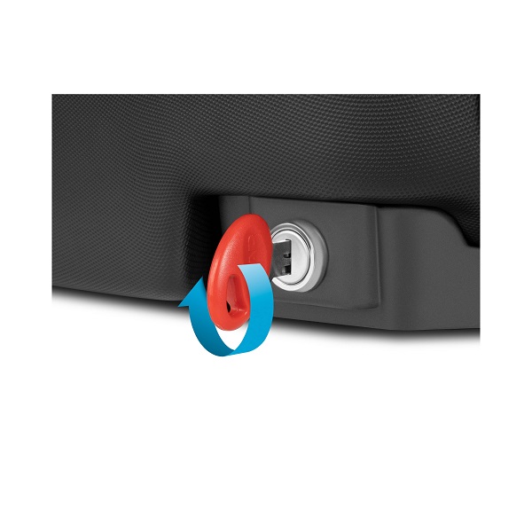 Include un doppio sistema di sicurezza: serratura a chiave sull'attacco e serratura a combinazione sull'apertura della borsa.