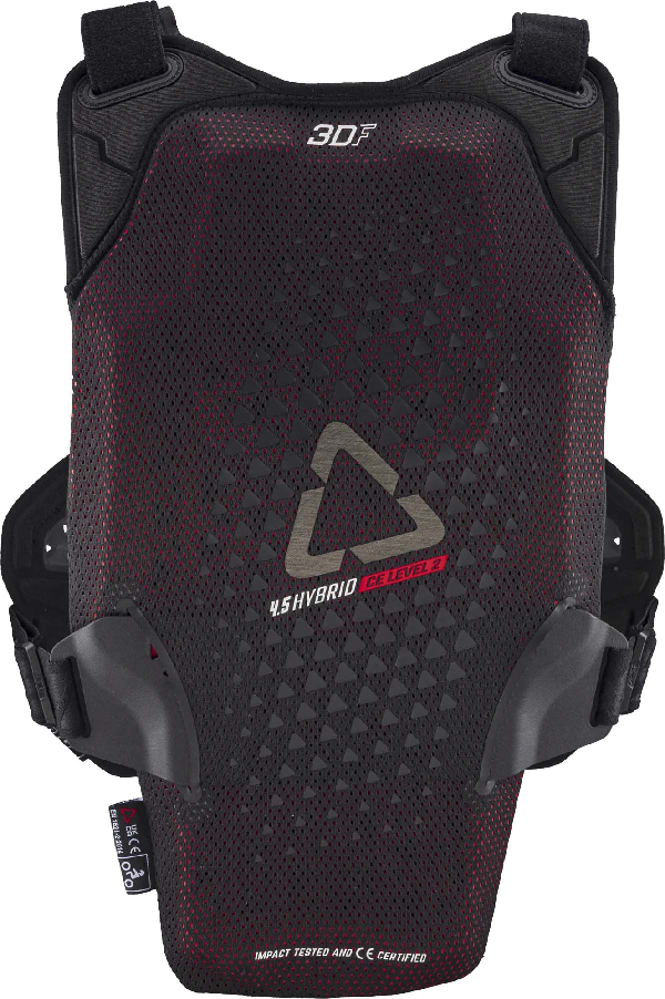 La nuova gamma Hybrid, progettata specificamente per il motociclismo, è dotata di una protezione toracica rigida per resistere agli urti e di una protezione dorsale morbida per un comfort extra. La protezione toracica 4.5 Hybrid è dotata di una protezione rigida con protezione dagli impatti FlexMesh Pro, molto leggera e ventilata, mentre la parte posteriore è dotata di morbida schiuma antiurto 3DF che si adatta alla forma del corpo rendendola molto comoda e ventilata.
