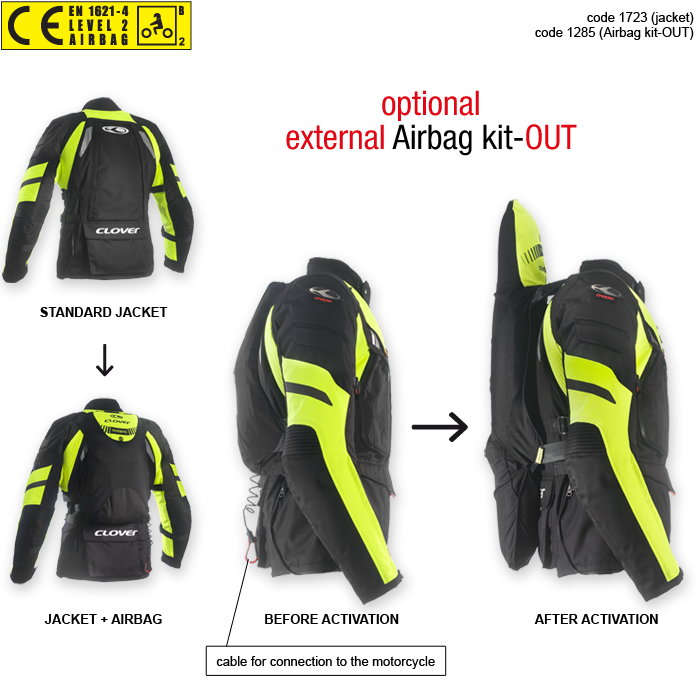 Il primo airbag per motociclisti omologato CE Tempo di attivazione: 0,08 secondi, il più rapido ad azionamento meccanico 6,4 volte più protettivo di un paraschiena CE di livello 2